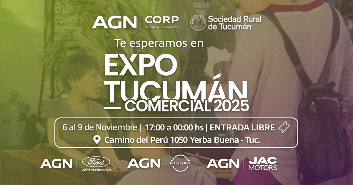 La Expo Comercial 2025 se desarrolla del 6 al 9 de noviembre en la Sociedad Rural de Tucumán, con entrada libre y gratuita y un horario de 17:00 a 00:00 horas. Este encuentro se consolida como un espacio estratégico para impulsar el consumo, generar oportunidades de negocio y reforzar el vínculo entre empresas, productores y emprendedores.